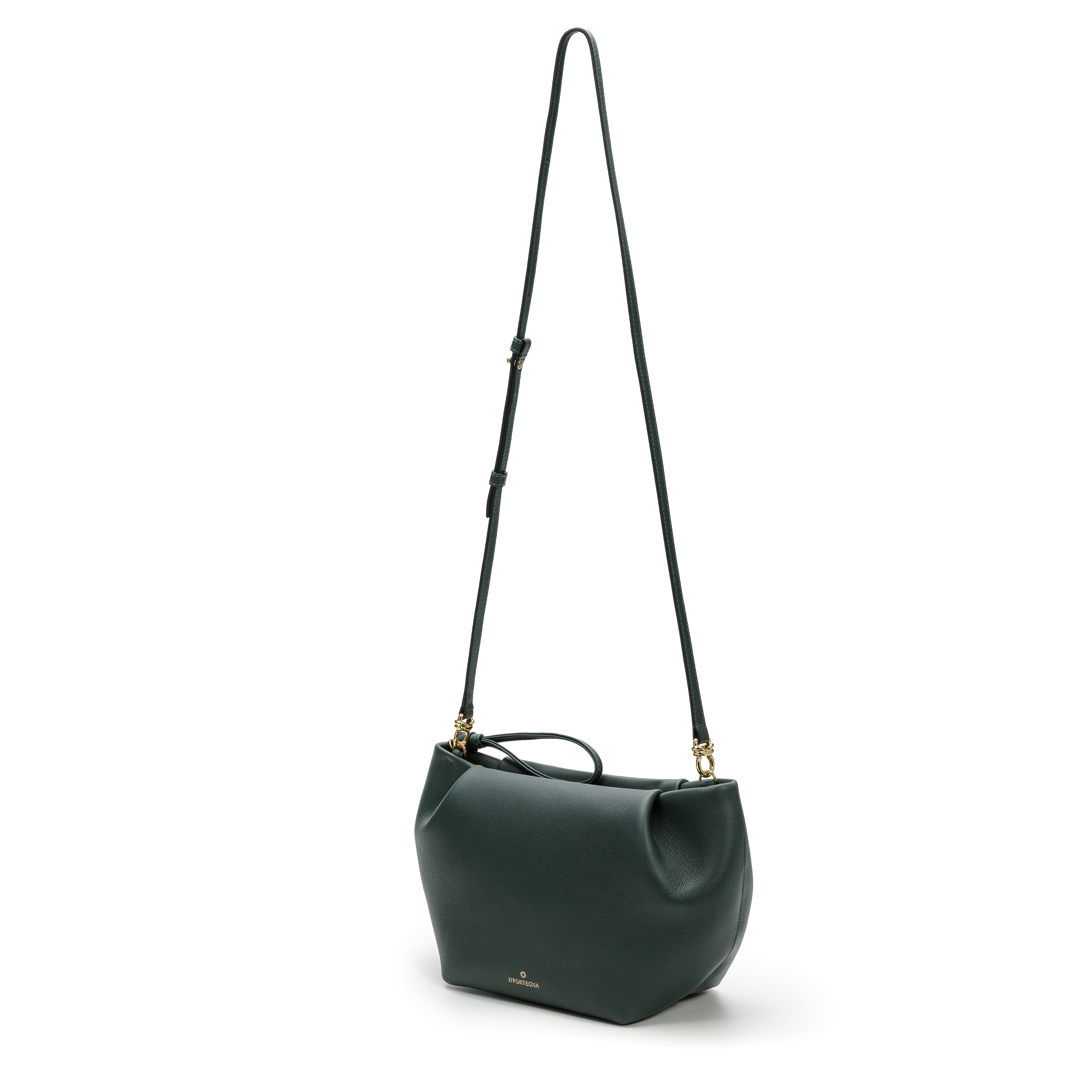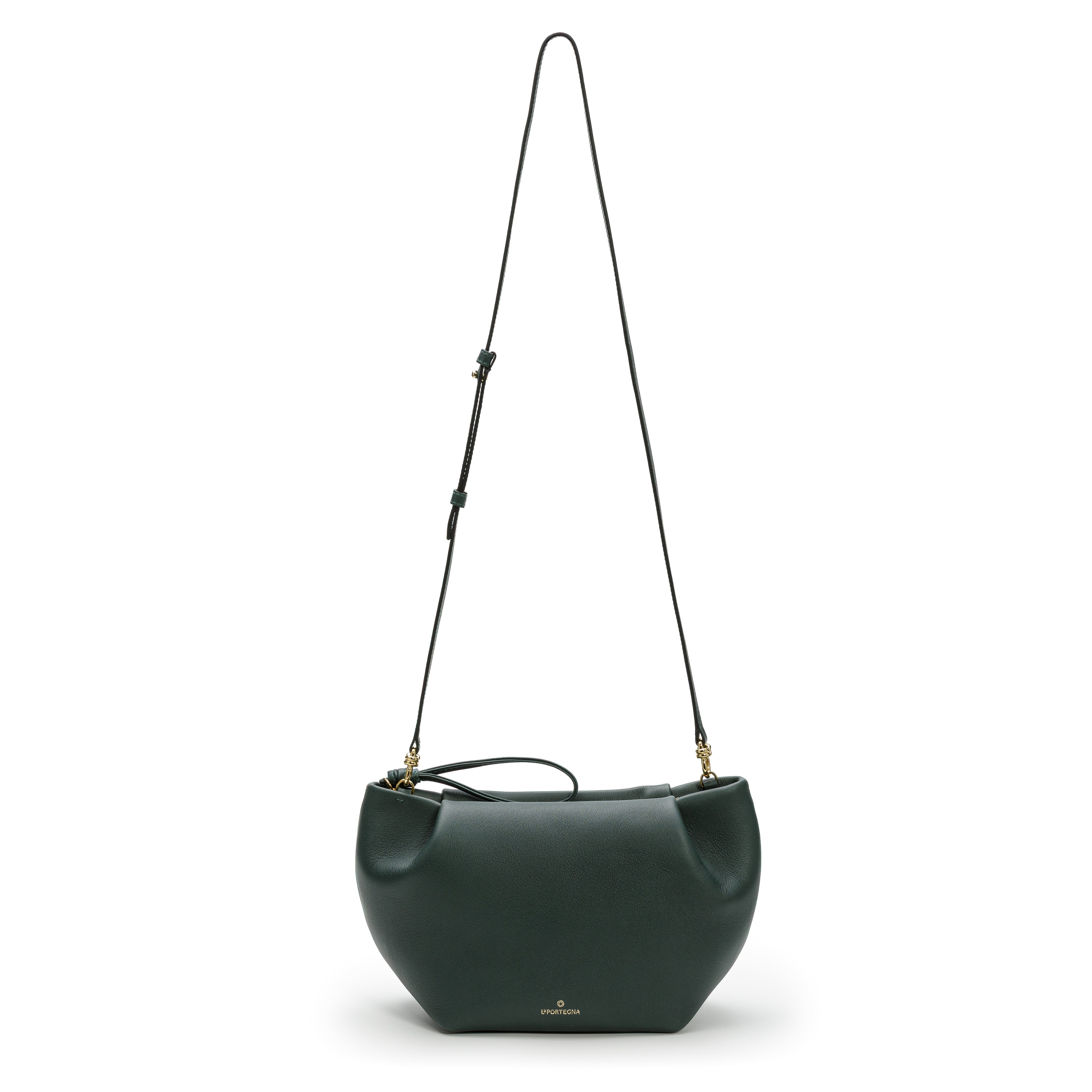 Son design épuré est rehaussé du nœud signature La Portegna, détail raffiné qui lui confère caractère et élégance. Grâce à sa taille idéale, sa poche intérieure zippée et sa bandoulière polyvalente, elle vous accompagne aussi bien au quotidien que lors de vos occasions spéciales.